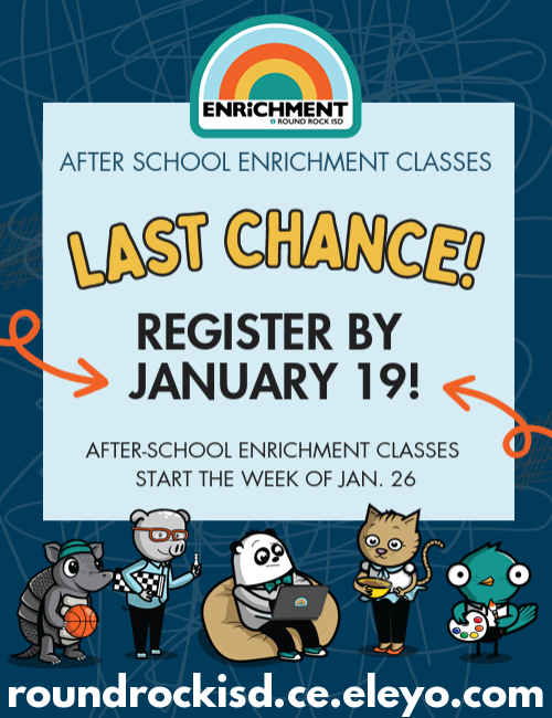 January 19th Student & Staff Holiday January 20th- 3rd and 4th Grades RLA STAAR Interim January 21st - Spring Individual & Group Pictures January 22nd- 5th Grade RLA STAAR Interim January 23rd - 2nd Grade Wildcat D.A.D.S. Teaching Day January 27th- 3rd and 4th Grades Math STAAR Interim