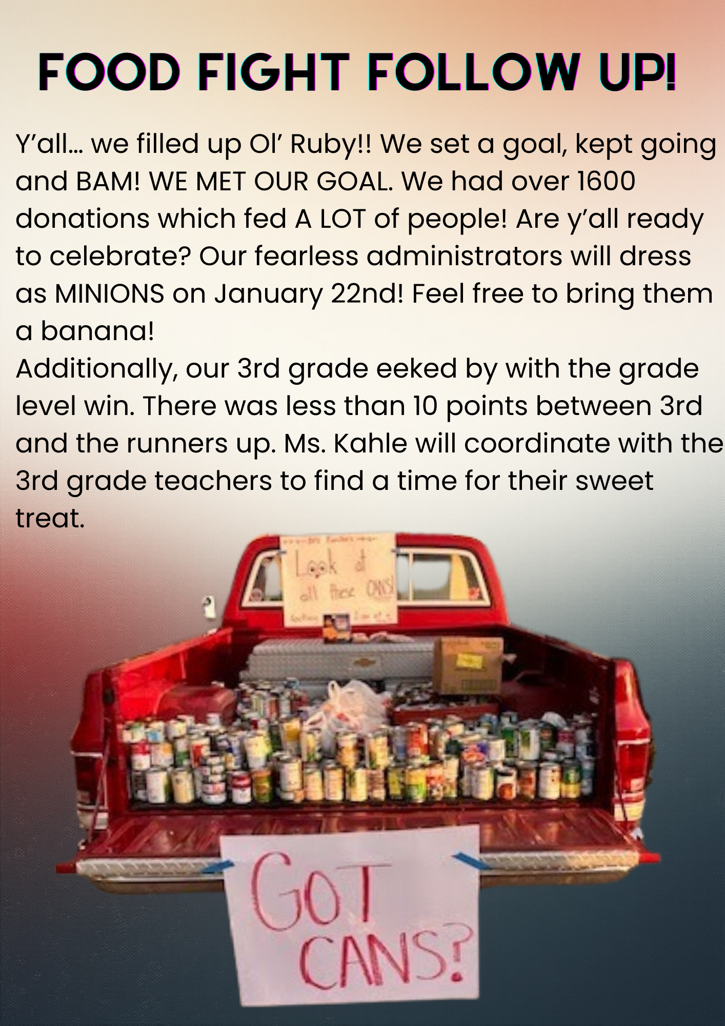 Spring Picture Day – Wednesday, January 21st. Bring your best smile and dress snazzy for Spring Picture Day on Wednesday, January 21st. We need more volunteers to help picture day run smoothly by keeping lines moving and checking for yogurt, pizza sauce, or smudges on faces. Sign up here and thanks for your help, in advance!