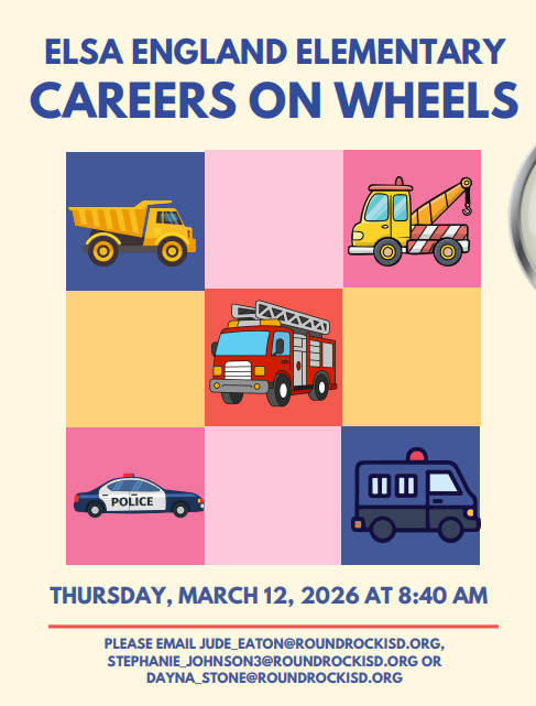 The school counselors are in the beginning stages of planning for Career Day and Careers on Wheels, and we would love your participation! If you or someone you know uses a vehicle as part of their job, we invite you to join us for our Careers on Wheels event on Thursday, March 12th, and share your work with our students!