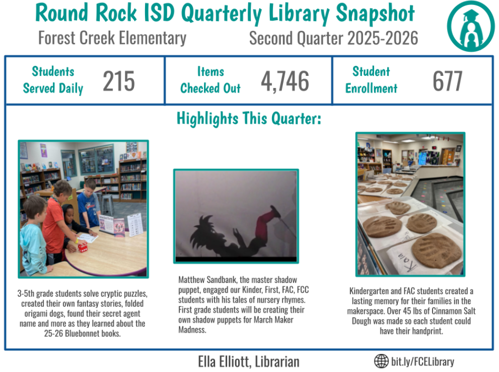 Follow Forest Creek Elementary School on Facebook and Instagram: forestcreek.roundrockisd.org |