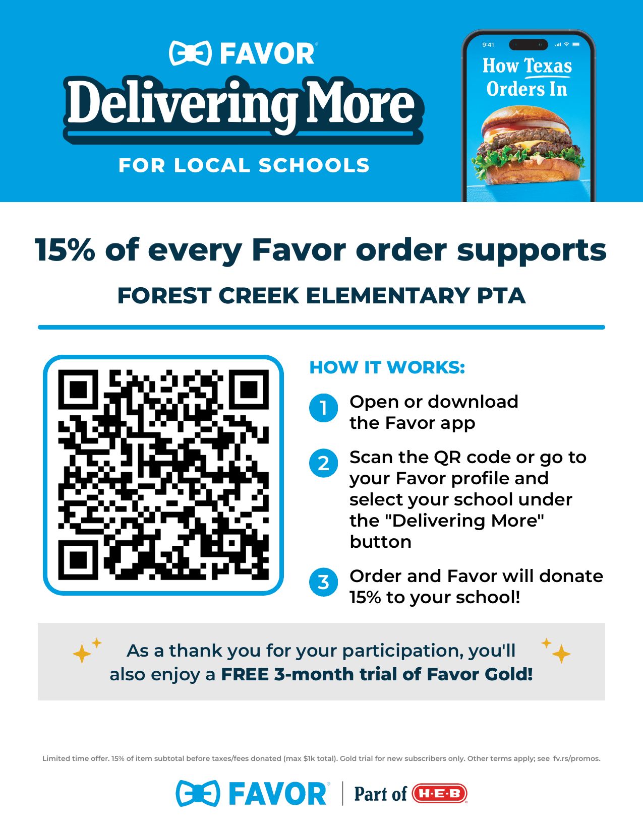Starting NOW, Favor Delivery will donate 15% of every order between now and May 31st back to our PTA.