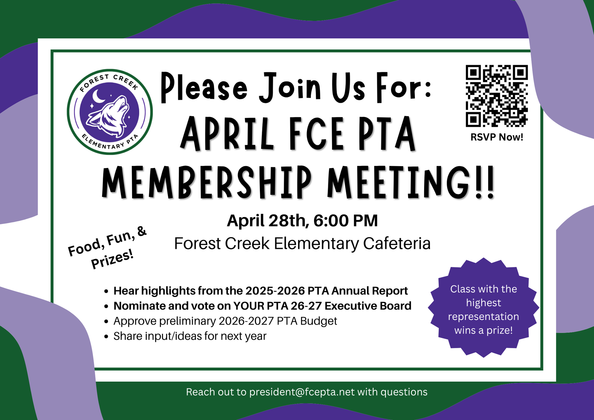 04/28: PTA General Membership Meeting - Elections (6-7pm)