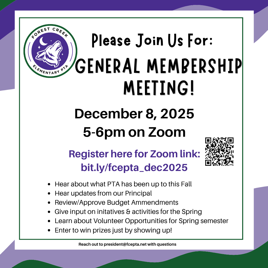 Join us for our next PTA Meeting on December 8th! Come stay informed, get involved, and help us support our students and school community.