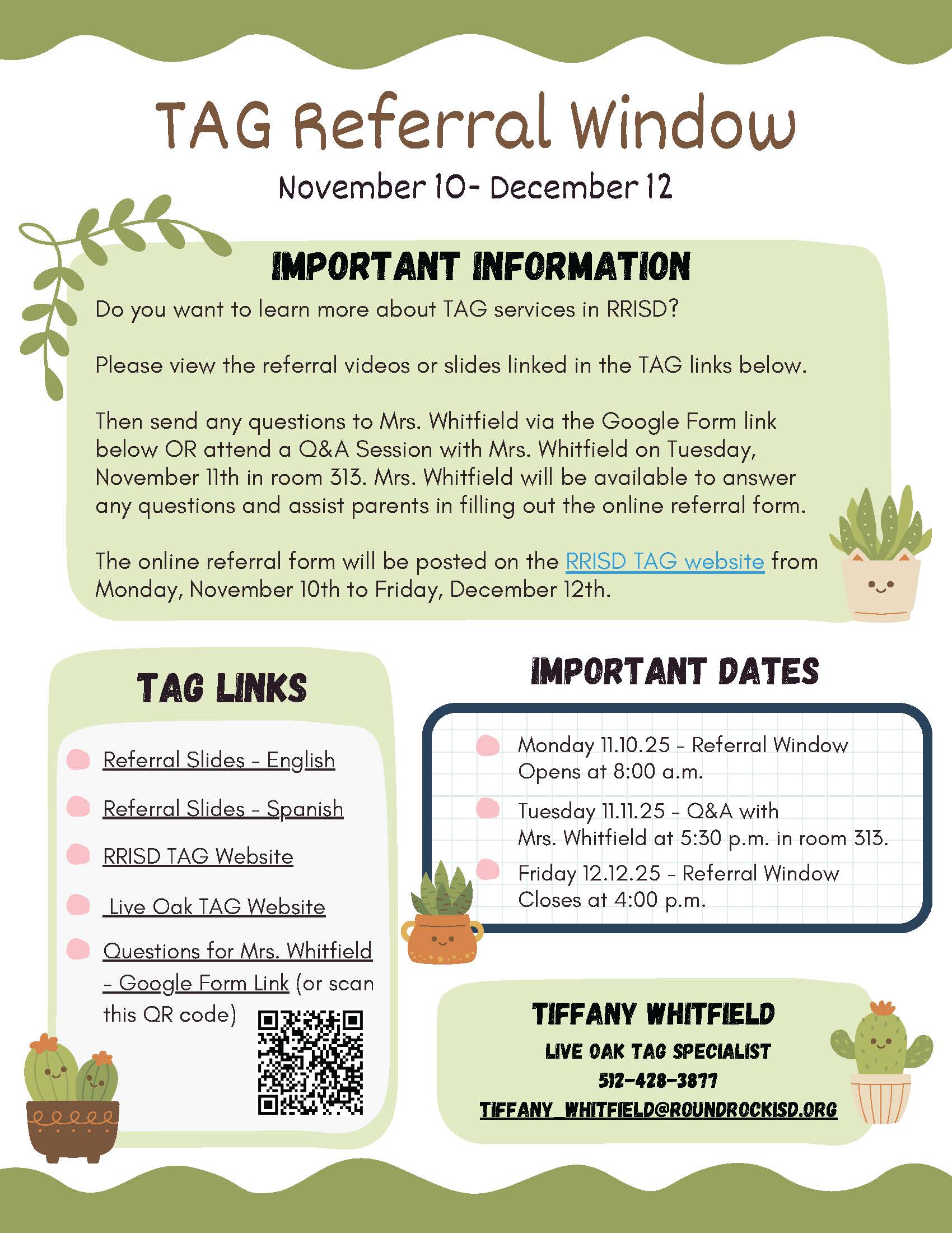 This is the last week the TAG Referral Window is open. It closes at 4:00 pm on Friday! |