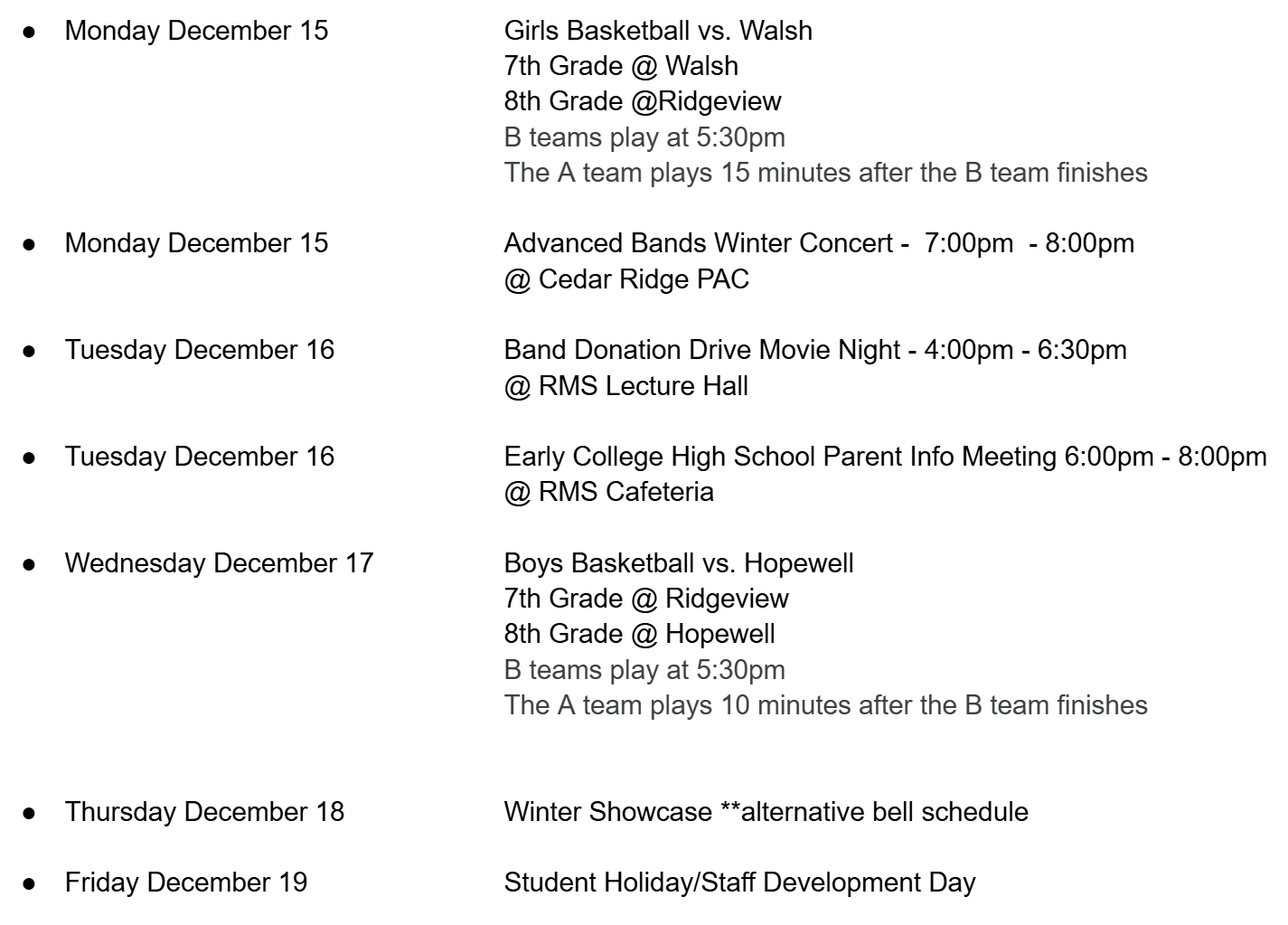 RMS PTA NEWSLETTER - December 8, 2025 |