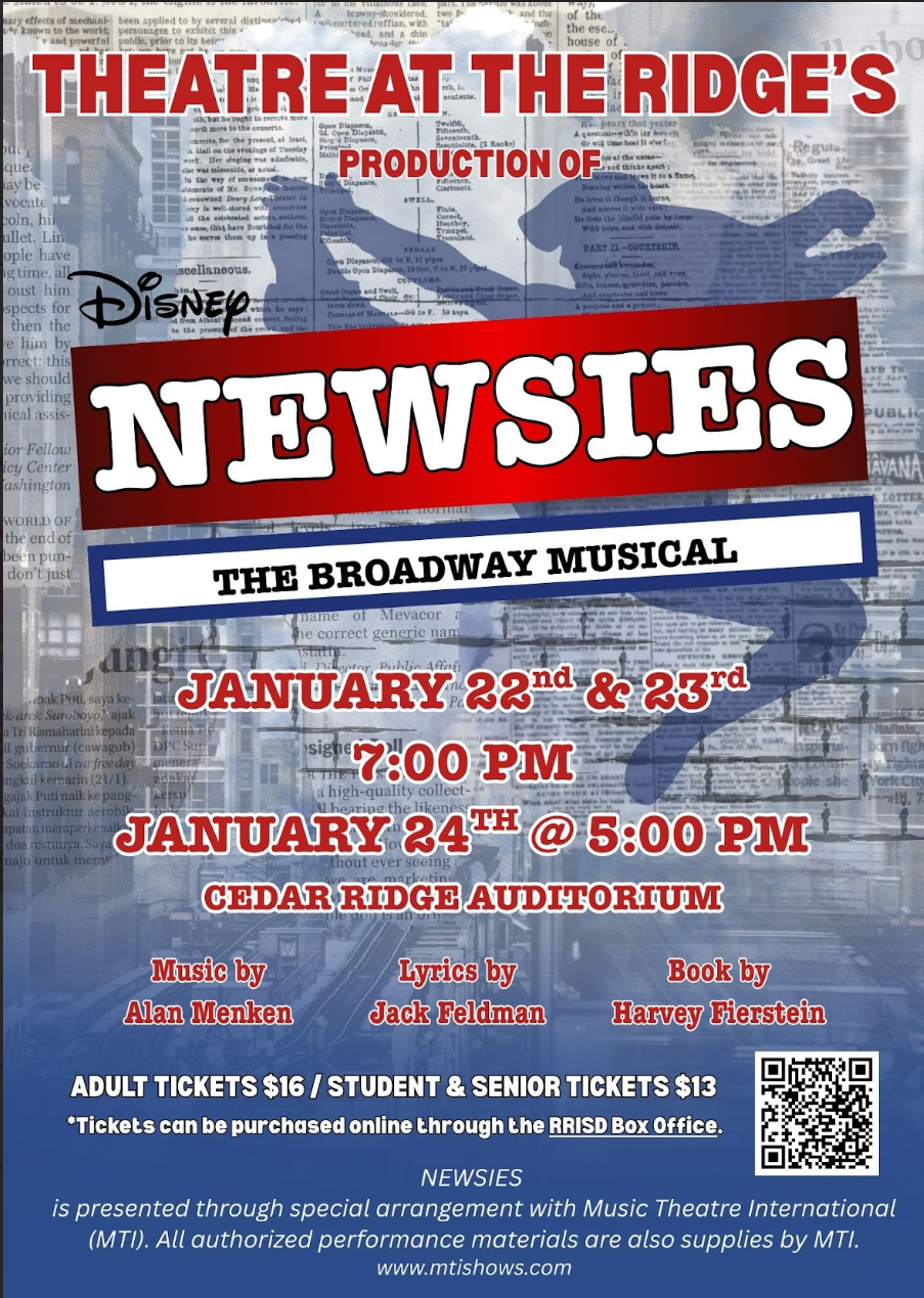 Newsies is a high energy and entertaining musical production about the 1899 New York City newsboys' strike. It tells the story of a charismatic young leader, Jack Kelly. who rallies his fellow impoverished newsies to strike against Joseph Pulitzer and other powerful publishers who raise newspaper prices, exploiting the children. With the help from aspiring reporter Katherine Plumber, they fight for fair wages and better conditions, discovering their strength in unity to challenge the powerful elite.