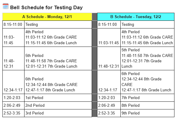 We’ll be administering the i‑Ready Math and Reading Diagnostic Assessments on Monday, December 1, and Tuesday, December 2. To help you and your child prepare, we’ve created a detailed letter that includes the special bell schedules for those days, explanations of how the diagnostic works, and helpful tips for getting ready. All students should bring their charged district-issued Chromebook, personal wired headphones or earbuds, and a book or work to do after completing the assessment. No deliveries are able to be made to students during our testing block.