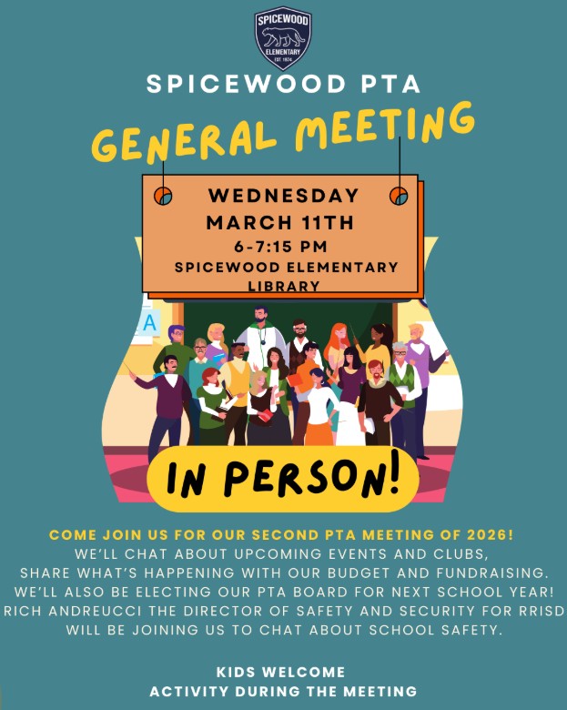 3/11- PTA Meeting - In Person- Spicewood Library at 6:00pm