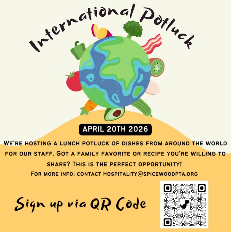We’ve added an option for families to make financial contributions to support our Teacher Appreciation Week efforts. Please see the flyer for details, and reach out to Hospitality Chair Sam Bond at hospitality@spicewoodpta.org with any questions. Thank you for helping us make this week extra special for our staff!
